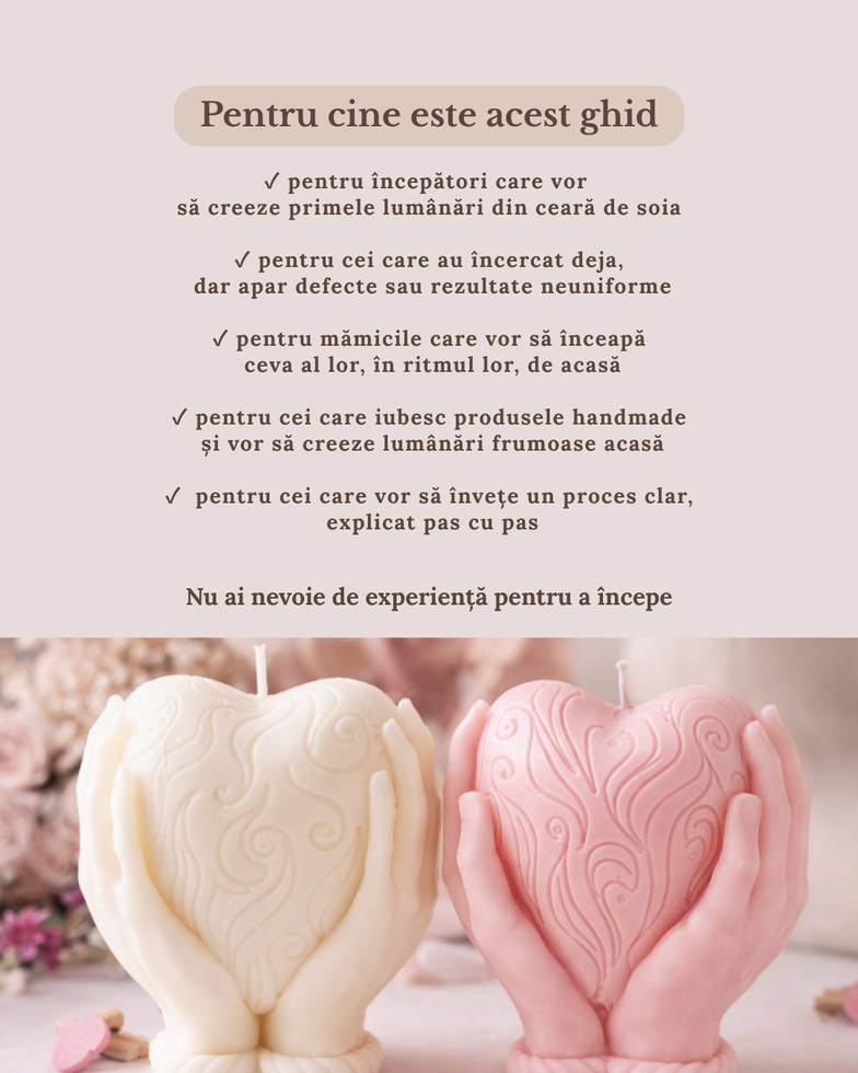 În acest ghid vei învăța ce materiale sunt necesare, temperaturile corecte de lucru, cum se adaugă parfumul și colorantul și cum poți evita cele mai frecvente defecte.